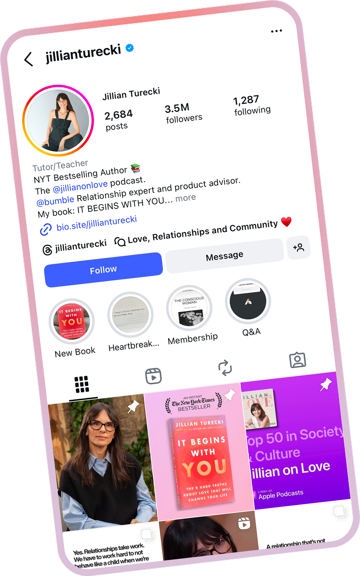 Jillian Turecki is a renowned relationship expert, New York Times bestselling author, and host of the podcast Jillian On Love. Fueled by an insatiable curiosity about what makes a relationship thrive, Jillian has helped millions over the last 20 years through her teachings, courses, social media, and writing to revolutionize their relationship with themselves and their partners. With her compassion and authenticity, Jillian delivers direct guidance and support to help people truly transform their lives.